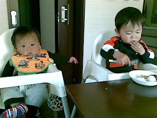 イケアで買った椅子。買った時には旭には早かったのですが… 最近は座らせると機嫌良くてお昼御飯の時も晩御飯の時も兄弟並んで座らせています。迅は『旭くぅ~ん』と御飯そっちのけ。旭は、迅の食べてる御飯を見ながらヨダレを垂らしています早く食べたいのね… でも、離乳食はもう少し先ですよぉ