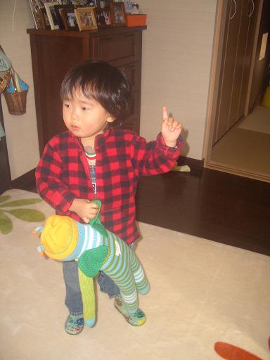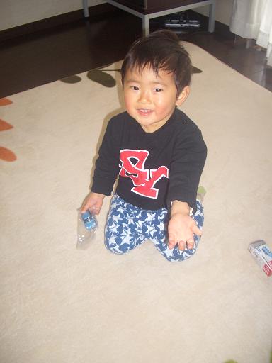明けましてオメデトウございます今年も良き年になります様に…… と願いたいトコロですが……正月早々、迅 発熱ですしかも39度。 普段、熱なんて全然出ないのに こんな時に限ってです大晦日…それまで元気にしていたのに、晩御飯時に何の前触れもなくテンション 眠いだけだと思い、寝に連れて上がるも1時間ほどで『ママママママママママぁ~』のママコール。添寝すると、体が熱く 熱を測ると38,7度。慌てて夜間診療に連れて行くと、『インフルエンザかも知れませんねぇ~ 出している薬を飲んで、熱が下がらなければ 明日検査に来て下さい。』との事で、座薬と飲み薬を出されました。でも、出された薬は粉薬。 大好きなジュースで溶かしてみるものの、いつもと違う味に、『飲まないのぉ~』と得意の泣きべそ無理やり飲ませると、全て吐き出され、仕方なくストップ。座薬だけ入れて、その日は別室で寝、そして今日。朝は、37度台まで下がっていたもののグズグズ。 お昼前に熱を測ると39度。もう一度座薬を入れて、お昼寝をしたら薬が効いた様で元気に。 熱も再び37度台。いつもと同じ位ご飯も食べ、テンションも上がってきたので、このまま治ってくれれば……と思っていたのに、その願いは空しく夕方には39,4度にで、新年早々病院へ。検査の結果、インフルエンザではなく「ただの熱」でした薬は、取りあえず飲まなくても大丈夫な様で、座薬だけ追加で頂きました。インフルエンザなら… 旭にうつったら… どうしよう…と思っていたので、違ってホッ。一先ず安心です。でも、夜間診療は 迅と同じ様な患者さんがイッパイ。風邪、流行ってるのねぇ~体調が悪いと、何でもママ限定になるのがツライ旭が飲んで寝ての繰り返しだから何とか助かっているものの、子供が2人になると大変 自分専用・迅専用・旭専用と体が3つ欲しいくらいですはぁ~明日は元気になって欲しいなぁ……