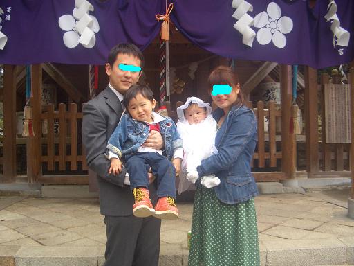 旭、4ヶ月です… が、今日、お宮参りとお食い初めを。お宮参りは冬で寒かったから… お食い初めは…忘れてたから え~ぃ、両家に2度も集まってもらうのも大変なのでマトメテやっちゃえ~って事でさすがに4ヶ月ともなると、表情もあって 写真撮影も楽チン 大変なのは、調子に乗って言う事聞かない迅でした大きな太鼓の音にも、シャンシャン鳴り響く鈴の音にも 旭はビクともせず、じ~っと神主サンを見つめていたのに… 私の横では2歳児が半泣き状態でした ナンデヤネン前日の天気予報で『明日は春の嵐になるでしょう…』と言われていたのに、お宮参りの時は雨も降らずでラッキー 実家の母が「雨女」、ハッチ母も「雨女」で、旭の晴れの日に雨なんて悲惨だぁと思っていたのに、お天気ももって… どうも旭は「晴男」の様。 だって、「旭」だもんね 勝者、晴男です 無事にお宮参りを終え、舞台を我家に移して お食い初め。今回も、迅の時と同様 近くのスーパーで焼鯛を用意してもらい、残りは全て自分で作りました 前日から下準備をし、今日は和える・温めるのみ。 頑張って作った甲斐あって、ミンナにも好評でした 主役の旭は…初めてのオッパイ以外の味に微妙な顔。いつもは、私達の食事を 『だら~ッ』とヨダレを垂らしながら見てるくせに…ヤッパリ見るのと食べるのは違うのね 年長者のハッチ父に食べさせてもらいました。これで食いっぱぐれる事もないね 迅は…頑張って作った料理を殆ど食べずに、大好きなジィジの食事を急かして『一緒に遊ぼうよぉ~』とプらレールに誘っていました。 で、イッパイ遊んでもらってご満悦でした普段は、ママがあまり相手してくれないもんねぇ… ジィジ、お疲れ様でした。これで暫くは旭に関する行事もないかな 2人目ともなると、ホント適当だから 忘れそうです