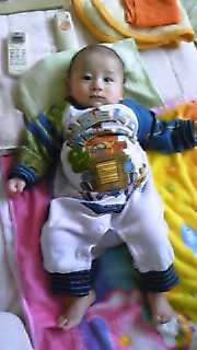 旭、4ヶ月になりました片目だけだった二重瞼、見事に両目に しかも、後から二重になった左目の方が大きい前日まで、何ともなかったのに 次の日朝起きたら二重。 『いやぁ~ん、旭クン、二重じゃ~ん』 もう、可愛くて仕方ありません ホッペをすりすり、ほっぺにチユッ何をやっても、抵抗しない旭が可愛い、可愛す・ぎ・る強く顔を拭いたら、この貴重な二重が消えてしまうのでは…と心配で、優しくしか拭けない私です最近は、声を出して大笑いしたり お喋りがふえたり… 呼びかけると、嬉しそうにニヤ~っと笑ったり… お気に入りは高い声で『旭クン』と私が呼ぶのと、『旭サマぁ~』と迅が呼びかける声みたいです良く飲み、良く寝……… 足もお腹もムチムチ夜の授乳も、1度だけ。 飲んで、電気を消すとスグに夢の中 そんな彼は素敵スギです 旭クン、この調子でお願いしますね