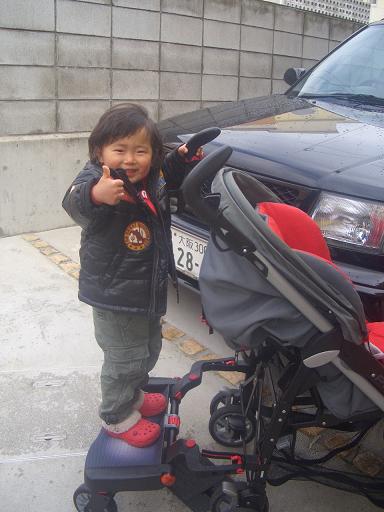ベビーカーにバギーボードを取り付けました。取り付けをハッチにお願いしたんですが、どうやら説明書の出来が悪かったらしく…『これ、不良品やんけ』『何やねん、これ』と、キレられ何とか無事に完成。決して、不良品ではありません迅に、『good job』と褒めてもらったハッチ。ご苦労様。 これで、明日から2人連れてのお出かけが楽になるかな