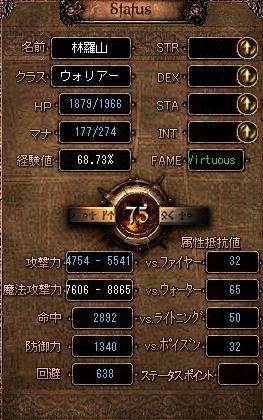 未完全タムファーで数ヶ月狩りしなきゃいけないような気がしてる林です生贄買うお金が無いんですね。生贄ですら700mとかするんですから・・・コロッセウムで入賞して賞品をゲットしよう・・・。ムリですかね・・・で、昨日念願の成長武器を買ったわけですが忘却の雫が無いために、スキルが適当でした。ワンハン1シルマス1しか振ってなかった・・・wで、アリーナで忘却探したんですけど、!?!?高すぎΣ(・ω・`)1個17mとかアリエヌスただでさえタムファ買って金がないっていうのに・・・で、途方にくれてたら意外や意外。ギルメンの夏兄(仮名)が忘却持ってるとのこと☆-(ノ゚Д゚)八(゚Д゚ )ノイエーイ早速売ってもらいましたwそして、大改造ビフォアアフター開始!!これが改造前。ちなみに自前支援(岩肌、クイステ、ライオン)ですなんか攻撃だけ高いですね・・・。防御は紙Σ(・ω・`)そしてこれが改造後!!これも自前支援です見事なまでに防御回避が上がってます。骨董装備なのに防御2350Σd(・ω・`)bビシッただ攻撃が激減しちゃいました。まあ、どのみちPTでヲリは攻撃できませんしね・・・。攻撃しても食らわせられないし・・・。ちなみにこれはギルメン最強のパラ忠美さんの支援もらったときです防御3276Σd(・ω・`)bHVで囲まれても(そんなに)痛くありませんでしたb素晴らしき片手のタフネス!!そして、いざ自前支援でフレソロ突撃!!!!ウォォォォォォオオオオ!!これくらいの数なら問題なく狩れましたwただタムファが瀕死になります・・・。攻撃が下がったので殲滅遅いですil||li _| ̄|○ il||liラッキーなことにエンチャ拾いましたbでもやっぱりソロは不味いですね。ということでアリーナ等で林を見かけた方は遠慮なく拉致っちゃって下さい。モンス集めならお任せをb・・・コーニュ装備買うお金すらねぇorz誰か融資カモ━━━━щ(゜ロ゜щ)━━━━ン!!!!!!