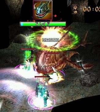 は~い、二日いっぺんに更新します。ちゃんと二日分見てあげてください。今日は色々初体験しました。まず!スレ狩り初体験!まだしたことなかったの~?とか思った人には合成失敗の呪いがかかりました。しばらくの間綺麗な青い石しかできません。マスターDAROS、聖騎士タダミ、アマゾネス雪さん、敏感肌林の4人でラヴァストーンへ。なんだかんだで・・・スレキタ━━━━(゚∀゚)━━━━!!!!!!無駄なソーニースパイラルをしてる林が写ってますそしてスレが喋ったΣ(・ω・`)・・・・・?スレイドさんみみず喰ったことあるの・・・?っていうか誰だ肉喰われてる奴は・・・。ミミズのような肉の味がするのって・・・マスタ肉→きっと霜降りタダミ肉→きっと赤身雪肉→何か美味しそう林肉→・・・俺か!?食われたの俺か!?いつの間に賞味されてたんだ!il||li _| ̄|○ il||li喰われたって言っても死んだわけじゃないです。左腕喰われただけですからbで、林以外の皆さんのおかげで無事討伐成功Σd(・ω・`)bビシッドロップの分配(゚д゚)ウマーっていうかね、確実に林はいなくて良かったんですよ。ただ分配取っていっただけでした・・・他の皆さんごめんなさいil||li _| ̄|○ il||liそして、二つ目の初体験はホリド初侵入!!まだ、行ってなかったんだとか思った人はPT運が大幅に減りました。しばらくの間PT探しにアリーナ行ってもPTは見つからないでしょう。で、中に入ると・・・細長い変な奴がイル━━━━(゚∀゚)━━━━!!!!!!キングレクタだって!?細い!細いよママン!で、ふらふらしてたら囲まれた!!Σ(・ω・`)大きい兄ちゃんたちによってたかってボコられてます。しかし、これくらいでやられる林じゃないΣd(・ω・`)bビシッしっかり反撃!!HP吸収のおかげで痛くない!!でも、相手もほとんど痛くない!!orzソロするならホリドの方が楽ですね。敵もそんなに堅くないし、人もいないし。今度からソロするときはホリドにこよっとwさあ、明日はいよいよコロッセウム!林の作戦は通用するのか!?