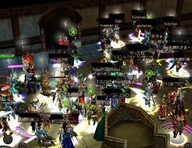 最近、葡萄頭をかぶった片手パラを見ると全部シュト兄に見えてしまう林ですさて、今日はUWの守備側で参加してきました林がしたこと支援にスタン→仲間の到着を待つ→タコ殴り→ヌッコロw変身マジにスタン→仲間の到着を待つ→タコ殴り→ヌッコロwwそこら辺にいる攻撃側を攻撃→何故かマスターDAROSを巻き込む→ヌッコロ・゚・(ノД`)・゚・何となく門の外へ出てみる→モグタンやゴリソン他にタコ殴りされる→耐え切る遠くから雷撃ってくるマジを追いかける→マウンテン→ヌッコロと、まあ非常にいやらしい役割をしてました・・・でも、しょうがないんですよ作戦ですもの・゚・(ノД`)・゚・まあ、作戦の甲斐あって守備には成功しました林は税率0%を守りきりましたよで、UW終了後ユニオンホールで記念撮影林がどこにいるかわかるかな?見つけても何も商品はありませんが・・・守備側もなかなか面白かったです次回も守備側で参加しようかなおまけでたΣ(・ω・`)