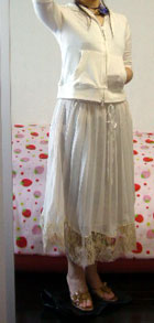 思いたってロングスカート風に穿いてみました。どうでしょう。