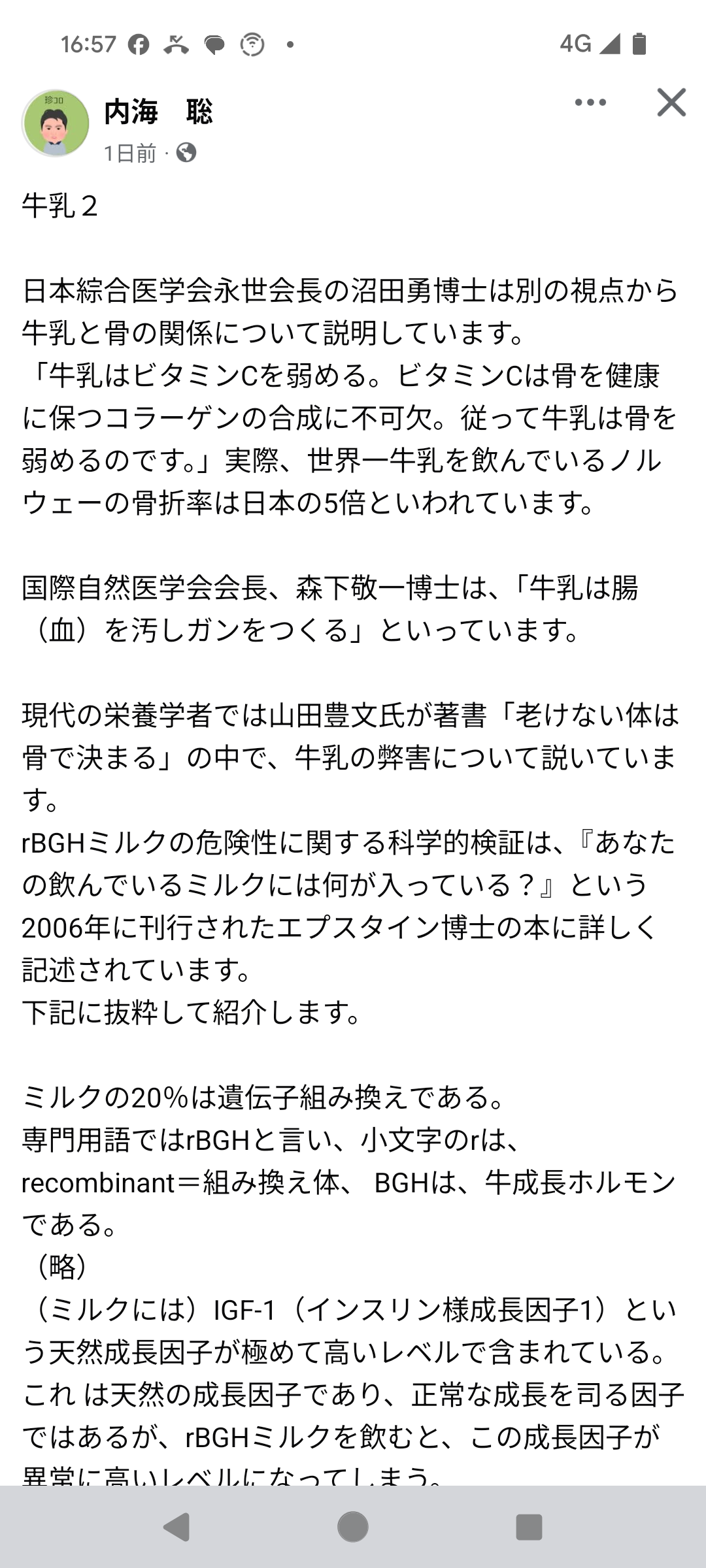 僕は20年前から飲まなくした。大好きだったチーズも食べなくなった。ヨーグルトもしかり。この動画↓絶対見てよね。【有料級】【世界一嫌われ医者】乳製品について♪牛乳はモー毒と言われていますが、ヘルシーなイメージの豆乳も実はとても危険です♪牛乳や豆乳など乳製品の何...https://youtu.be/7tkkNGKF6WUまんがで簡単にわかる!毎日の食事に殺される食源病 医者が教える汚染食品から身を守る方法 [ 内海聡 ]【中古】 乳がんと牛乳──がん細胞はなぜ消えたのか【中古】 パンと牛乳は今すぐやめなさい! 3週間で体が生まれ変わる ビタミン文庫/内山葉子(著者)完全図解版 牛乳のワナ メディアでは報道されない乳製品の黒い真実 [ 船瀬俊介 ]DVD 船瀬俊介の船瀬塾「肉と牛乳のワナ」〜「肉食」vs.「菜食」、最終決着