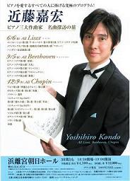 近藤嘉宏さんのショパンのレクチャー&ミニコンサートに行きました。近藤さんは透明感があり、澄んだ音色を出す、癒しのピアニストです。心に音が染み入ってくる感じです。コンサート以外の素顔の近藤さんは初めてでしたが、気取らない自然体で、とても身近な感じがして、優しさが滲み出ていて素敵でした。ショパンの魅力はと聞かれ、歌のようなポエムのような閃き的な叙情だということでした。優雅さを引き出すのが演奏家の仕事。ベートーベンはしっかり構築されていて、脚色する余地がないのに対し、ショパンは弾き手がいかようにも味付けできる余地が残されていておもしろい。とのことでした。そうなんだ~。素人の私でもなんとなくわかる気がします。質問コーナーでも思わず、手を挙げてしまいました。「弾いているときは情景が浮かんでいるのですか?」と。「それはないです。「水のしずく」を弾いていても、水のしずくをイメージはしないです。」「音符が浮かぶのですか?」と聞いたら、「それもないです。ただよい曲にしようとそれだけに集中している。無の状態だとのことでした。やはり、無なんですね。続けて、「ショパンの曲はいかに叙情を引き出すかだと思います。でもひとりよがりになってはいけない。相手にも喜んでもらわないと」と言われ、一方、「自分がいつも感動していなければいけないと思います。」とも言われたので、自分も感動し、聴衆も感動するのにはどのように折り合いをつけるのですか?という質問もしてしまいました。すると、「弾き手の自分がいる一方、観客の中にいて、本当にいい曲かどうかを客観的にチェックしている自分とが存在しています」とのことでした。客観的にもう一人の自分が見ているというのはセラピーでも必要なのですが、まさにそれなんですね。ヒーリングセラピストクリスタルボウルサウンドセラピストHeart of Love 柴田梨歩