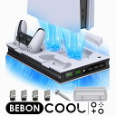 PS5 冷却ファン PS5 スタンド 縦置きスタンド BEBONCOOL 冷却パッド 冷却台 2つ冷却ファン搭載 4つドングル付き コントローラー充電 3つ充電端子付き 充電LEDランプ 静音 日本語説明書 1年保証