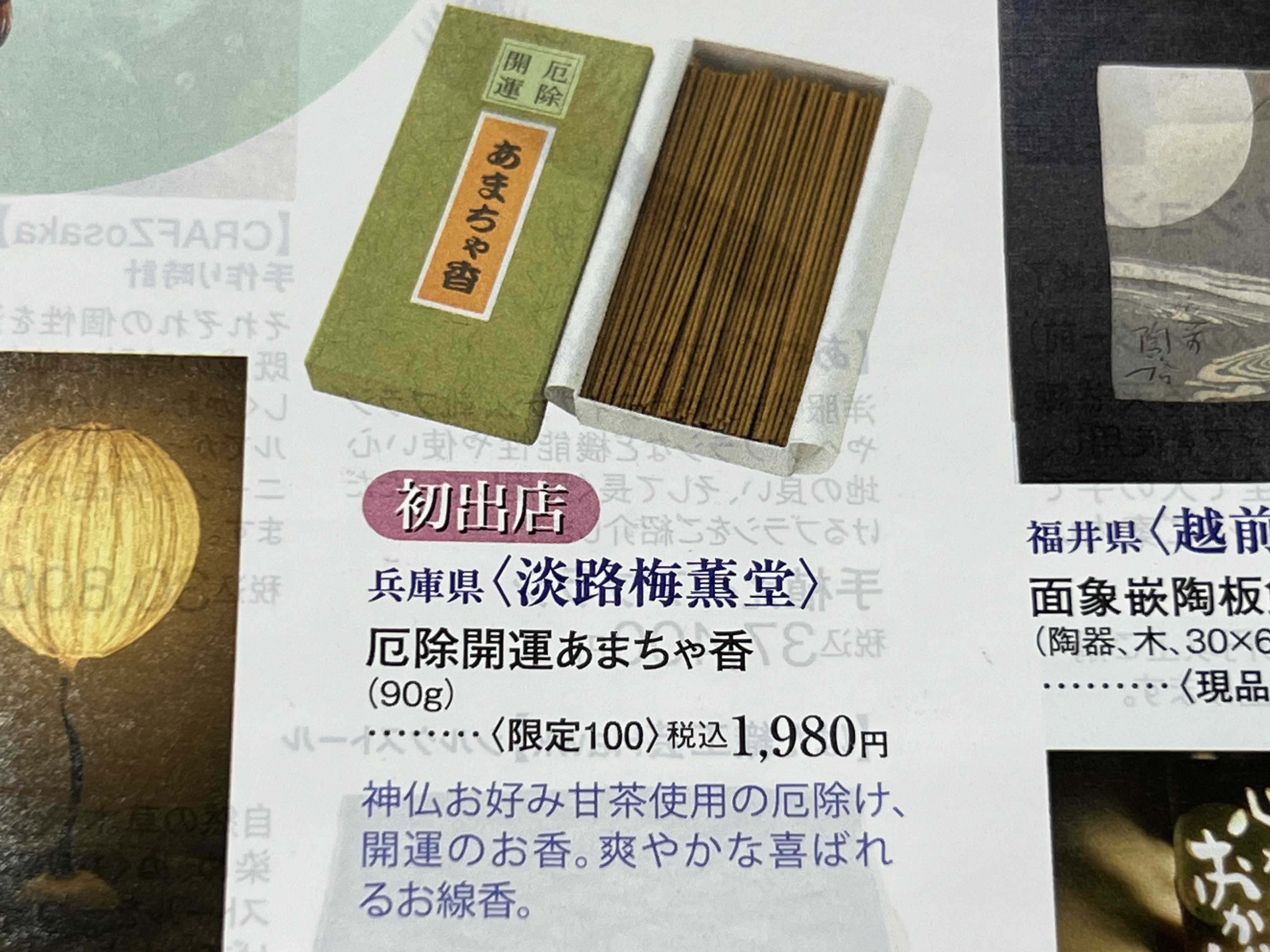 Kyoto Takashimaya Department Store, 7th floor<br>-Kono michi hitosuji - Japanese Traditions Exhibition.Incense sticks japan brand amacha kou..;br>Friday, August 22 - Wednesday, August 27, 2025 [6 days.10:00 a.m. - 7:00 p.m. (Closes at 5:00 p.m. on the last day)<br><br>Japanese Traditions Exhibition- Recommendation of sweet tea incense sticks giftset.<br><br>Awaji Baikundou's amacha incense is made from amacha, a favorite food of the gods and Buddha. Amacha is tea used during the flower festival to celebrate the birth of Buddha, and is characterized by its sweet and gentle fragrance.<br><br>Amacha incense is believed to invite the blessings of gods and Buddha through its fragrance and to make wishes come true. It is also believed to be effective in warding off bad luck and evil spirits, and is recommended for those who are in a bad year or wish to protect themselves from misfortune and bad luck.<br><br>Awaji B aikundou is a long-established incense manufacturer based in Awaji City, Hyogo Prefecture. The company was founded in 1905 and has a history of over 120 years. Awaji B aikundou's amacha incense is made using traditional methods and is characterized by its high quality fragrance.<br><br>Why not burn Awaji Baikundo's amacha incense to pray for world peace?<br><br>Send fragrant incense from Awaji Baikundou.<br>Kami-Buddhist favorite sweet tea incense. Do the Buddha's feast.<br><br>From the food in front of the six paths of God and below, the sweet tea incense for God and Buddha's favorite ☆<br>Incense sticks gift for mourning in your neighborhood!souvenirs japan.<br><br><br> ◎◎◎◎◎◎◎◎◎◎◎◎◎◎◎◎◎◎◎◎◎◎◎◎◎会社名 淡路梅薫堂株式会社住 所 兵庫県淡路市江井2845-1電 話 0799-86-0065FAX 0799-86-0224i-mode URLhttp://www.awaji-baikundo.com/i.htmURLhttp://www.awaji-baikundo.com/MAIL awaji-baikundo@iris.eonet.ne.jp◎◎◎◎◎◎◎◎◎◎◎◎◎◎◎◎◎◎◎◎◎◎◎◎◎◎Company name Awaji BaikundouCharge YanoAddress 2845-1 Ei Awaji city , Hyogo 656-1531 JAPANTEL +81-799-86-0065FAX +81-799-86-0224URL http://www.awaji-baikundo.com/i-mode URL http://www.awaji-baikundo.com/i.htme-mail awaji-baikundo@iris.eonet.ne.jp◎◎◎◎◎◎◎◎◎◎◎◎◎◎◎◎◎◎◎◎◎◎◎◎◎◎かおる駅 グルメな皆様おすすめチソウギャラリー淡路梅薫堂江井工場兵庫県淡路市江井2738-2http://www.awaji-baikundo.com/koujou.htm営業時間.9:00〜12:00.13:00〜16:00.定休日.年末年始、祝祭日、盆、日曜日、第二・第四土曜日。 淡路梅薫堂公式YouTube(ユーチュウブ)https://www.youtube.com/channel/UCwputrdP5akb2ftyaI0nzcAFB(フェイスブック) https://www.facebook.com/AwajiBaikundou/IG(インスタグラム) https://www.instagram.com/awajibaikundou/X(ツイッター) https://twitter.com/AwajiBaikundouTikTok https://www.tiktok.com/@awajibaikundouLINEビジネス https://page.line.me/sbn3753tPinterest https://www.pinterest.jp/AwajiBaikundouhttps://www.amazon.co.jp/淡路梅薫堂-線香%20贈り物-お線香贈答用-お線香%20ギフト-線香ギフト/dp/B07BYSL6L1https://www.amazon.co.jp/淡路梅薫堂-線香%20贈り物-お線香贈答用-お線香%20ギフト-線香ギフト/dp/B00CQUCHCQhttps://www.amazon.co.jp/淡路梅薫堂-お線香-線香-線香%20自宅用-お香/dp/B019UQ768S