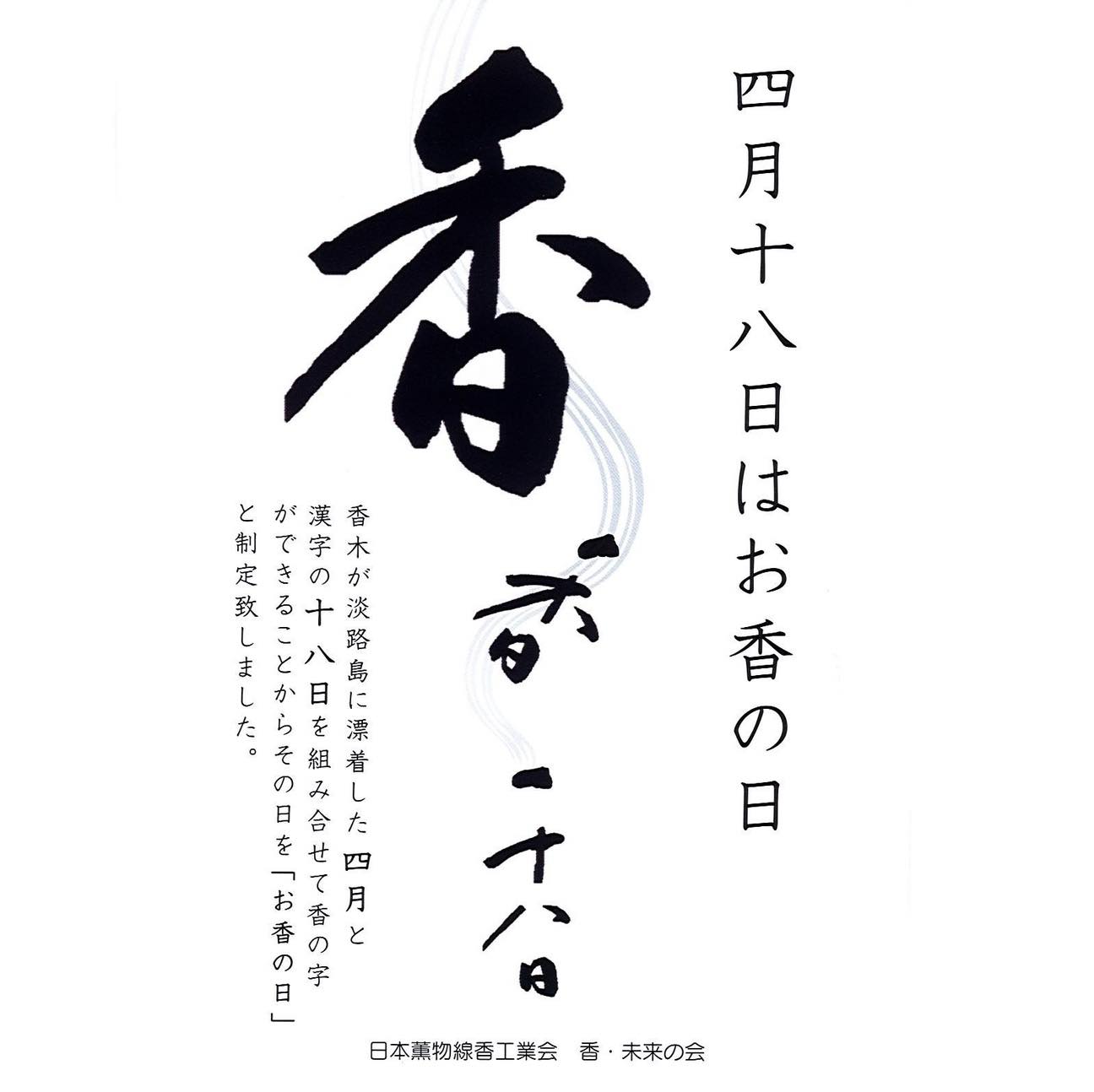 四月十八日は「お香の日」。 香木が淡路島に漂着した四月、漢字の十八日は「香」の字ができることからその日を「お香の日」としています。 2025年4月18日(金)にお香の日PRイベントで大阪の天王寺駅周辺2カ所でお香のサンプル配布をします。 14時から配布開始しましてなくなり次第終了です。 通りすがりで貰えたならラッキーお得なイベントです。 #お香 #お香の日 #大阪イベント #4月18日 #四月十八日 #日本薫物線香工業会 #香未来の会 #無料配布 #天王寺駅 #お線香 #線香 #御線香 #せんこう #おこう #良い匂い #いい香り #いい匂い #良い香り◎◎◎◎◎◎◎◎◎◎◎◎◎◎◎◎◎◎◎◎◎◎◎◎◎会社名 淡路梅薫堂株式会社住 所 兵庫県淡路市江井2845-1電 話 0799-86-0065FAX 0799-86-0224i-mode URLhttp://www.awaji-baikundo.com/i.htmURLhttp://www.awaji-baikundo.com/MAIL awaji-baikundo@iris.eonet.ne.jp◎◎◎◎◎◎◎◎◎◎◎◎◎◎◎◎◎◎◎◎◎◎◎◎◎◎Company name Awaji BaikundouCharge YanoAddress 2845-1 Ei Awaji city , Hyogo 656-1531 JAPANTEL +81-799-86-0065FAX +81-799-86-0224URL http://www.awaji-baikundo.com/i-mode URL http://www.awaji-baikundo.com/i.htme-mail awaji-baikundo@iris.eonet.ne.jp◎◎◎◎◎◎◎◎◎◎◎◎◎◎◎◎◎◎◎◎◎◎◎◎◎◎かおる駅 グルメな皆様おすすめチソウギャラリー淡路梅薫堂江井工場兵庫県淡路市江井2738-2http://www.awaji-baikundo.com/koujou.htm営業時間.9:00〜12:00.13:00〜16:00.定休日.年末年始、祝祭日、盆、日曜日、第二・第四土曜日。 淡路梅薫堂公式YouTube(ユーチュウブ)https://www.youtube.com/channel/UCwputrdP5akb2ftyaI0nzcAFB(フェイスブック) https://www.facebook.com/AwajiBaikundou/IG(インスタグラム) https://www.instagram.com/awajibaikundou/X(ツイッター) https://twitter.com/AwajiBaikundouTikTok https://www.tiktok.com/@awajibaikundouLINEビジネス https://page.line.me/sbn3753tPinterest https://www.pinterest.jp/AwajiBaikundouhttps://www.amazon.co.jp/淡路梅薫堂-線香%20贈り物-お線香贈答用-お線香%20ギフト-線香ギフト/dp/B07BYSL6L1https://www.amazon.co.jp/淡路梅薫堂-線香%20贈り物-お線香贈答用-お線香%20ギフト-線香ギフト/dp/B00CQUCHCQhttps://www.amazon.co.jp/淡路梅薫堂-お線香-線香-線香%20自宅用-お香/dp/B019UQ768Sお線香 送料無料 2025 自宅用 厄除け 魔除け 線香 普段使い 家庭用 お香 浄化用 浄化線香 お香 強力 開運 楽天 せんこう おすすめ 白檀 御香 【 厄除開運あまちゃ香 】90g 日本製 アロマ 淡路島 御線香 ギフト いい香り いい匂い 人気 贈り物 プレゼント リラックス 縁起物