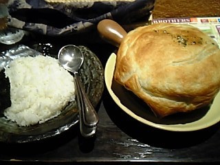 ぶり大根の予定でしたが、急遽スープカレーに変更してお送りしております。らっきょブラザーズというお店に行ってきました。札幌にあるらっきょの姉妹店。3種キノコとチーズのパイ包みカレーを食してきました。小鍋に入ったカレーの上をパイ皮で覆ってます。このパイ皮とスープカレーが絶妙のマッチング。具材に肉類が入ってないので物足りないかな?とも思ったけど、チーズが入ってるおかげでコクもあるので、十分満足できました。 らっきょのスープカレーはレトルト商品になっていて、楽天でも購入することが出来ます。残念ながら、パイ皮はないのですが(笑)