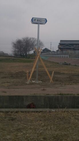 見にくいかもしれないが、「MAGロード」と書いて有る。「MAGロード」とは「東海環状自動車道」の沿線にあたる「MIE(三重)」「AICHI(愛知)」「GIFU(岐阜)」頭文字現在供用中なのは東回り区間と言われる豊田東JCT~関広見ICと西回り区間の大垣西IC-養老JCTの区間だがつい2か月前までは国道の抜け道で背の高い草が生い茂っていた所いつもここから一本入った細い道を歩いて帰るのだが、こういう立て札が立つといよいよ着工が近いのかと思う