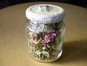 素敵なビンにつめて、素朴な布に刺繍を入れ、カバーをかけて