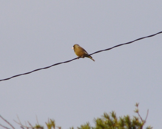 軒下の残雪も少しずつ融け始めました。まだ冷たい春風の中を小鳥たちが囀りながら気持ち良さそうに戯れています。雀が帰って来るのを待ちながら小鳥を見かけるとすぐカメラを向けてしまいます。今回の小鳥は『カワラヒワ』のようです。トーンの高い可愛い鳴き声翼に黄色い斑を持ち、嘴が円すい形広げた翼に現れる美しい模様を写真に撮りたかったのですがとても羽ばたくスピードについていけませんでした。後姿です^^■一口メモ■学名 Carduelis sinica漢字名 河原鶸(カワラヒワ)大きさ 約15cm全体に緑色で翼に黄色の模様があり、開いたり閉じたりして飛ぶことが特徴で、日本全域に留鳥として分布しているそうです。名前のヒワは「ひ弱い」という意味だそうです。