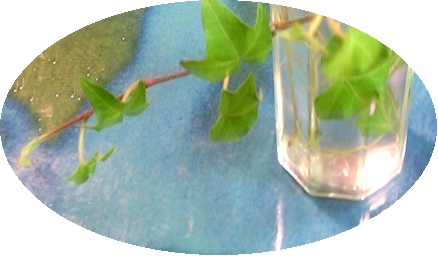 柔らかく光を抱く8面のガラス瓶。その中でゆったりと根を伸ばし可愛い小さな葉が次々と生まれているのは、観葉植物の中でもっとも丈夫で手間のかからない植物「アイビー」です。根を水の中に入れておくだけでぐんぐん育つのは嬉しいですね。お部屋の中のちょっとしたグリーン、ほっとします。学名 Hedera helix ☆花言葉「永遠の愛など」☆■一口メモ■分別回収されたガラス瓶などが、再び製品として生まれ変わる為にはたくさんのエネルギーを必要とするそうです。使われるエネルギーを最小限に抑えるには物を「捨てない事」とも言われています。普段使っているガラス瓶も素敵なフォルムをしたものがたくさんありますね。気に入ったガラス瓶に観葉植物などを飾ってみては如何でしょうか^^