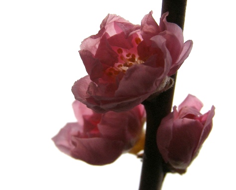 桃の花を飾りました。もう温かい地方では咲いているのでしょうか。桃の花をお湯に浮かべるとふわっと甘い香りがします。観賞以外にもいろいろと楽しめそうです。 学名 Prunus persica☆花言葉「気立ての良さ・愛の幸福・万能など」☆■一口メモ■桃の原産地である中国では、桃を仙木・仙果(神仙に力を与える樹木・果実の意)と呼び邪気を祓い不老長寿を与える植物として親しまれているそうです。又、日本の『古事記』には、伊弉諸尊(いざなぎのみこと)が桃を投げつけることによって鬼女、黄泉醜女(よもつしこめ)を退散させたと記されているそうです。鬼退治をする桃太郎が生まれたのが「桃」からという事には意味があったのかも知れませんね^^漢方では桃は捨てるところの無い万能植物だそうです。
