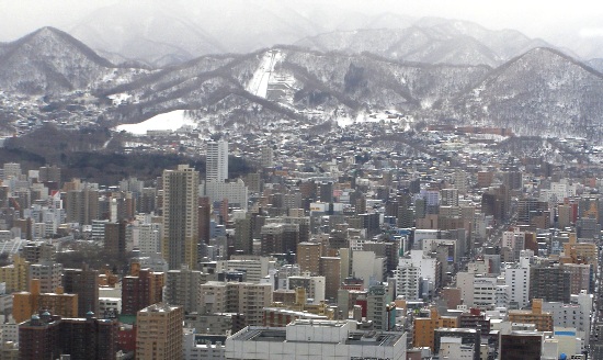 札幌に行って来ました。この写真は札幌の西サイドを「JRタワーT38(タワー・スリーエイト)」から撮った景色です。遠く見渡す限りに山々が連なる西サイド。中心地には北海道大学や植物園があり、緑あふれる魅力的な都市景観が見渡せます。世界的にも有名なラージヒルジャンプ競技場である大倉山ジャンプ競技場も見えます。陽射しを受け夕陽に染まり夜景に煌く街並み、遥かに連なる山々の稜線、彼方で溶け合う海と空。広々とした自然の姿も北海道ですが、この眺望もまたひとつの姿です。平成15年3月にオープンした「JRタワーT38」の38階の展望台(地上160m)は、北海道内での建造物では1番の高さを誇り360°広がる札幌の街並みが見えます。札幌にお越しの際は是非どうぞ^^■一口メモ■「札幌」の地名の由来アイヌ語の「サッ・ポロ(乾いた広いところ)」とする説と「サリ・ポロ・ペッ(大きな湿地のあるところ)」とする説などがあるそうです。「花」 スズラン 「木」 ライラック 「鳥」 カッコウ 人口 1882320人(平成18年3月1日現在…北海道人口の3分の1・全国で第5位)面積 1121.12平方km