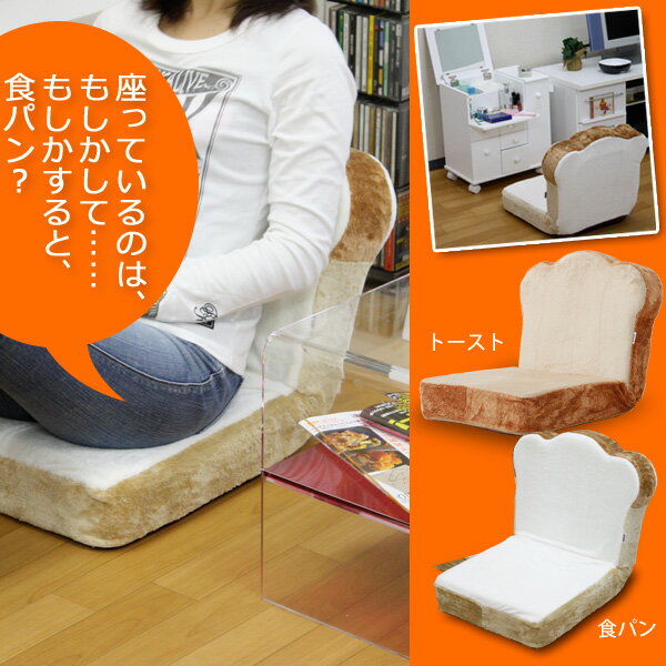 2013/03/07 フジテレビ めざましテレビ★コーナー : イマドキ ★★テーマ : フードモチーフグッツ ★本物そっくりでとっても楽しくなるフードモチーフグッツをご紹介おもわず食べたくなっちゃう【座椅子 トースト】が紹介されました食パンみたいなコンパクト座椅子。子供の座椅子としても、大人のミニ座椅子としても、幅広く使えます。食パンの耳の部分の色の使い分けと、生地のふわふわ感で、本当のパンどころか、かなり美味しそうに見えます。5段階リクライニングで、角度を調節するのに、一度水平にする必要はないので、使い勝手も簡単。小さいので持ち運びにも便利だし、邪魔な時は水平にしてクローゼットにしまっても、小さいので場所をとりません。また、この手の小さな座椅子は、背もたれのパイプが当たって痛かったりするんですが、この食パン(?)は、例えるなら8枚切りの食パンのように薄切りじゃなく、5枚切りの厚切りのような感じなので、分厚く、背もたれに違和感も感じません。ミニ座椅子ながらも、「背もたれがい(?)」があります。食パン 座椅子 リラックスチェア フロアチェア リクライニング キッズ【送料無料】 ◆◆ 【P0305】 店長使用 【春の新生活フェア2012】送料無料 【NN10】2台持ちならイーモバイルのかけ放題スマートフォン!