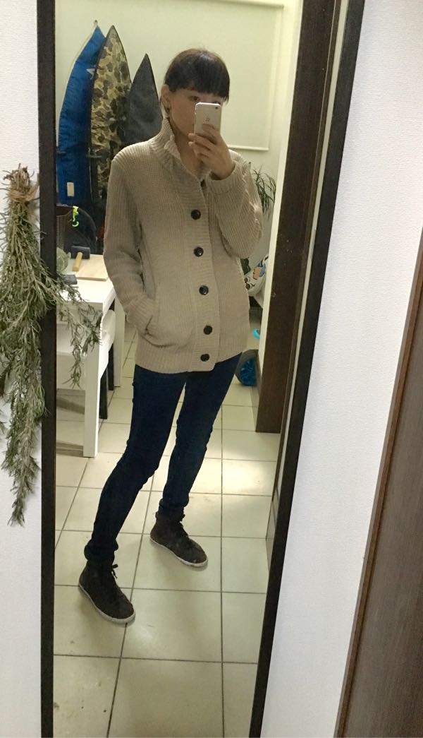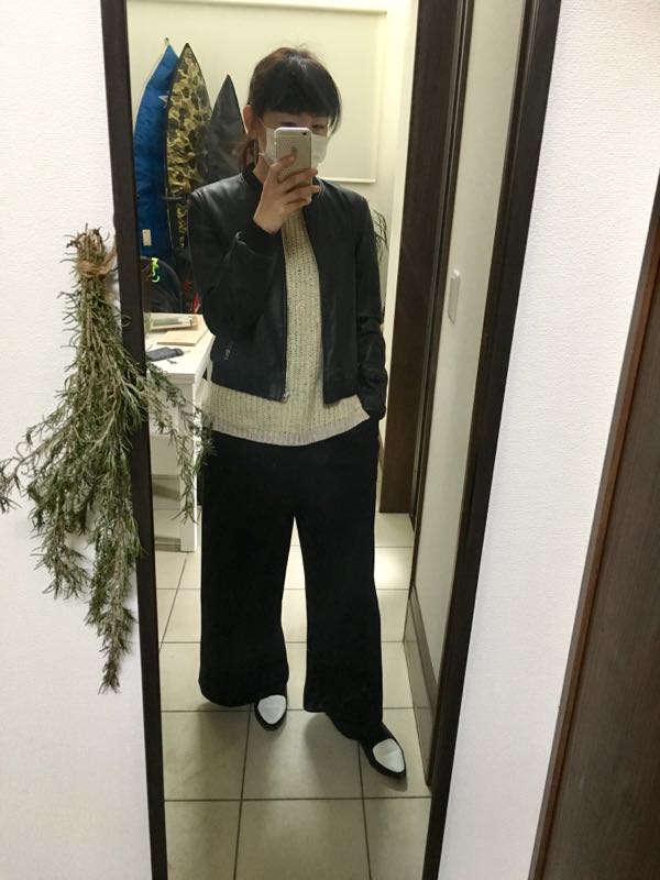 自炊歴18年。初めて包丁で手を切りました 今まで怖くて慎重に慎重に包丁を使ってきましたが ついに油断して猫手の中指の皮を刮げました 痛い。。。 さて今日のコーデ どうもいつもおんなじよーなコーデになります 家にいて家事するだけだと楽チンパンツコーデになるねー だいたい今年買った服プラス定番の服を着まわしているだけですのであたりまえか 定番といえば、今年何年も来ていた黒のタートルニットが逝きました いつのまにか首元にでっかい穴がありました gapのやつで綿の割合が高くて毛玉ができず色褪せも少なくて、大女にありがたい袖丈長めで お気に入りだったのに。。。 オールドネイビーも潰れてしまったし悲しいなー