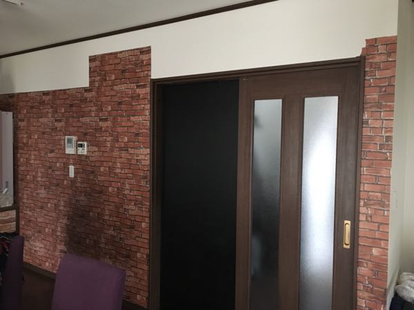 以前diyした壁が気に食わず100均のリメイクシート貼ってみたけど。。。イメージと違って嫌で嫌で貼り買えたくて壁紙買って張り替えました!息子たちを寝かしつけて一緒に寝ちゃいましたが次男の夜泣きで起きることができまして22:30にスタートですもうずっとずっとずっと買うか悩んで満を持して買いました生のり付きです修復不可能です【10m以上でマスカープレゼント】壁紙 のり付 クロス レンガ調 [生のり付き壁紙/シンコールBB9453(販売単位1m)]生のりタイプ※法人名義の領収書も発行マスカーの幅たりてないしで床はのりでベッタベタに(笑)のりがたっぷりなのでまっすぐ貼れなくても一度はがして貼り直しできて空気がたくさん入りましたが、私お手製の刷毛代わり(かまぼこ板に古靴下を履かしたもの)でも問題なく綺麗に空気を抜くことができて貼るのは思いのほか楽しかったですしかし、余分のカットが難しかったー何度も何度も貼り方を読んだし動画も見て頭の中でシミュレーションはバッチリだったのですがやはりカッターの力加減とかコツは難しく書いてあった通り、すぐカッターの切れ味が悪くなって壁紙がぐちゃりとなったり。。。ちょっと破いてしまったりちゃんとした壁紙を貼るのとリメイクシート貼るのをどっちもやってみての感想ですがどっちも一長一短で良し悪しですでもやっぱりちゃんとした壁紙の方が仕上がりは良いかなと思いますダイソーのリメイクシートはちょこちょこ追加で買い足して気がついたのですが生産ロットによってのりが甘かったり、色味が薄かったり濃かったり(明るい暗い)柄も微妙に伸び縮みがあって合わせに困ったり。神経質な人には絶対向きませんねー手軽なのは本当に良いんですが、やっぱり広範囲には向きませんわー約2時間かけて雑な性格そのままに雑に仕上がりました〜つなぎ目バレバレやし。。。でも前より断然いい!満足満足!なんてったってこの壁紙の良いところは表面がツルツルしてましての写真でわかるでしょうか?汚れてもサッと拭けば汚れが取れそうな感じなのですどうしてもテーブルの横やし、流しの向こう側やし汚れが付くのが避けられないところなので汚れてもすぐ落とせるのはありがたい家建てる時には思いもつきませんでしたが壁紙は汚れるもんやし、やっぱりそういうことも考えて施工決めなあかんかったなーさて、生活感丸出して恥ずかしいですが、こんな感じに仕上がりましたまだダイソーリメイク貼りが終わってませんけども。。。理想のイメージはみたいな感じなんですけどね〜どうでしょう?ちょびっとだけ近づいたかしら???