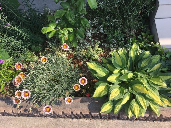 年齢のせいか指のカサカサが気になります スマホが反応しなかったり、今朝はビニール袋がめくれず思わず指ぺろしてしまって(鬱) さて、我が家の玄関先のgreenたち 写真右側の2色の緑が美しいキボウシが今のお気に入りです 大きく育って嬉しいです 冬に買って植えた苗が全然花開かずだったのですが 最近どんどん開いております 私、自分で買っておきながら花の名前覚えていません ピンクの花がキボウシとの間でしょんぼりしとるなー 日が当たらんようになっちゃったかなー このなんともいえないどぎつい色がかわゆくて買いました 植物とかほんとに興味なかったのにな~ 結婚して1年たらずで植物の魅力にちょっと目覚め ちびちびと無知ながら植物を増やしてきています 今は気が向いた時にホームセンターに苗を見に行ったり 偶然お気に入りが見つかったら お家につれて帰ってくる感じです 植物の管理って大変なので、働いていると庭仕事時間があまり作れないので 基本は放っておいても大丈夫なように手間のかからないものを選んでいます (なので1年草はまず手を出しません) 毎年大きくなっていくアナベルの開花が次の楽しみです