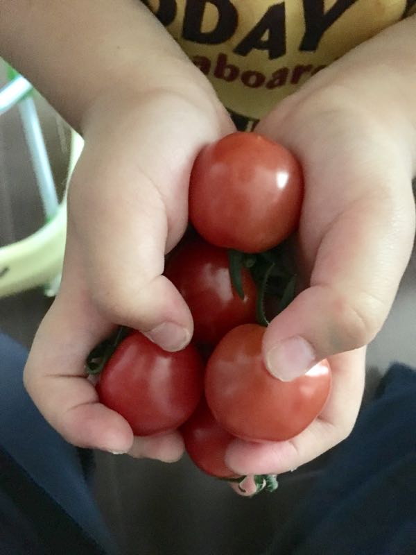 我が家のプチトマトもっさもさです。。。やはり当初の計画通り美しく育てるということはかなわずあっちゃこっちゃへ伸び放題のわっさわさのもっさもさ緑の実をいっぱいつけてくれていて収穫が楽しみなのではありますが実は一番最初についた実が一粒ずつ赤くなっていて味見がてら色づくたびに食べていました長男にも必ず味見をさせて「美味しいね!美味しいね!」と声をかけていたら長男が自分から実が赤いものを「僕が取る」と言ってとって食べるというのです「お外で食べると美味しいから」と私の口癖を真似して外で食べるといいますなので早速洗ってあげたら微妙な顔をしながらも自分から食べました!トマト苦手なのに!!!最初半分だけかじって私に渡そうとしたのですが「全部食べ!」と食べさせたら食べました!いつもは4分の1とか半分しか食べないのに!家庭菜園で苦手野菜を克服効果です!うれしー!「ママ、すっごい嬉しい?」って聞いてきます(笑)「うん!すっごいうれしい!食べられたね!」と全力褒めです(笑)トマト好きになってくれるといいなぁ~日記・雑談ランキングにほんブログ村
