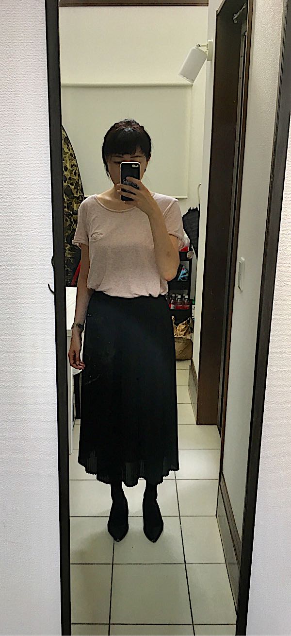 涼しくなってきたのでナイロン素材のプリーツスカート(裏地つき)を出してきました オールシーズンいける感じですが、やはり裏地付きのナイロン素材は 汗も吸わないし、ひっついて気持ち悪いし真夏はさけてしまいます。 H&Mの色も生地もうっすいテロテロのTシャツに合わせたのですが 意外と悪くないかも? 年齢が上がるにつれ、カジュアルでも上品さがでるように に気をつけています よほどおしゃれな人やモデル体型の人で無い限り、カジュアルすぎたり ダメージデザインのとか着ると、汚く見えたり、貧しく見えてしまう気がします そういう意味では、そろそろこのH&MのTシャツは捨てるタイミングかなー 安物買いの銭失いで、ちまちまと服を増やし 安いからすぐ着られなくなって捨てると思いきや 貧乏性でなかなか捨てることも出来ず着られない服がたまってきています。。。 買ったら捨てるを習慣化させないとクローゼットがゴミ箱化するなと実感中 格下げされて無駄に増えていく寝巻きも減らさねば。 結局着たいときに着たい服がみつけられない事態にもなっているし いっちょ断舎利ってやつをやるときがきたかもな~ 靴も渋ってないで捨てるぞ! 日記・雑談ランキング にほんブログ村