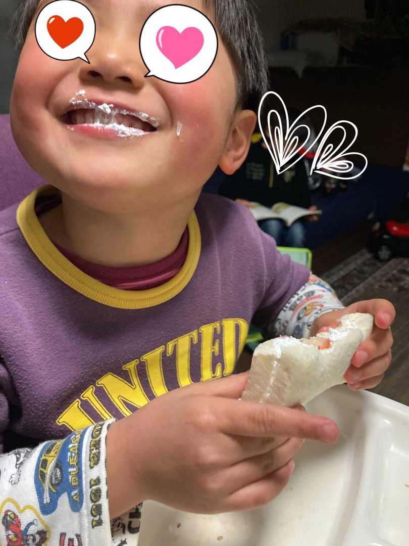 食後のデザートにお土産のイチゴサンドをペロリと食べた次男