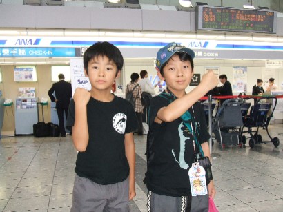 最終日,恐竜のトリオ戦を予定していましたが,多くの子供たちがハワイアンズに行くというので,息子もそっちに行きたいと言い出しました。まあ恐竜戦は地元でもあるから,疲れていた私の目も保養する必要もあって(笑),ハワイアンズに行きました。やっぱりすごい人の数ですね・・・。みんなでプールに入って記念写真を撮ってもらったり,水の中でふざけあったり,2時間ちょっとでしたが,楽しんだようです。ですが,シンデレラのごとく,帰りの時間が迫ってきました。後ろ髪を引かれる思いで皆に別れを告げ,IMTのパラワンさんの車に乗って,ハワイアンズを,いわきをあとにしました。仙台空港まで送ってもらい,そこでパラワンさん一家ともお別れです。リョウタ君と記念写真を撮りました。リョウタ君とはフェスの3戦目1回戦であたり,逆転負けをくらいました(^^;)。あの粘りでこれからもがんばってね。福島の皆さんには4日間大変お世話になりました。おかげさまで楽しい時間を過ごせました。お心遣いに感謝いたします。さて地元では猛者予選が行われ,カナデ君とジュンヤ君が予選を突破したようです。息子もこの週末,突破してもらいたいです。(あとの日記は順次アップします)