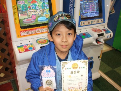 一昨日はたまカップと恐竜で両方優勝できたわけですが,それはそれはとても珍しいことで,これまで「たま」で優勝したときの同日の恐竜は悲惨な結果に終わってることがほとんどでした・・・。この日,15時からたまカップ「しょーがくかん杯」がありました。過去2回優勝している会場ですが,参加することでお菓子の詰め合わせがもらえたりするし(^^;),毎回上手い子が参加するので緊張感があって楽しい会場です。今回は帯広から来たセイカちゃんと一緒に参加しました。今日の競技は「つなひき」と「くりひろい」です。「ぱわー」と「すぴーど」ですね。一昨日同様チャレンジの際のパートナー「ひょっとこ」も考えましたが,やはり「どきょう」が競技にないのに使うのはダメだと思い,「むきむきっち」で行くことにしました。「ぱわー」ではどのごっちにも負けませんし,「すぴーど」も「ひょっとこ」の77に比べて,「むきむき」は72と5しか違わず,十分使えると判断しました。ここの会場は大会開始前に使用するカードを申請します。メインキャラ以外は重複使用が許されないので5枚のカードを申請するのですが,応援やアイテムで2回使用したい場合は同じカードを2枚持っていればOKです。息子とセイカちゃんは同じデッキにしましたが,「むきむき」は「ボディビルダー」ですし,「つなひき」では一気に引く作戦用,そして「くりひろい」では「すぴーど」を最大限上げる作戦用のデッキです。参加人数は9人。奇数なので店員も1人加わりました。セイカちゃんは3組目で店員さんと。息子は最終組と願ってもない位置が取れました。大会開始。いきなり「しんゆう」同士の引き合いで「評価が0」という対戦から。息子の相手のデッキがきになります・・・。セイカちゃんの番が来ました。「つなひき」は店員さんも「やったっち警察官」で頑張ったため,引くのにちょっと時間がかかり,評価を落としましたが,素点で1700点超を出し,得点3095点でした。「くりひろい」,うまく拾っていたのですが,途中ウンチをよけたあとすぐにくりが来て,一瞬「またウンチ」に見えたことから拾いに行くタイミングが遅くなってしまって落としてしまいました・・・。この1個のミスが響き評価は0。得点1848点で合計4943点。でも3組終わってトップです。4組目の男の子が無難にまとめて5174点を出し,その時点でセイカちゃんは2位となりました。さて,息子の出番。相手のデッキは「ぱっちマン」ということでラッキーでした。応援はすべて「だいしんゆう」ですから(^^;)。ちなみに相手の応援は「のんびりっち」でした。息子,一気に引いて,「のんびりっち」が出たときに勝負あり。得点は3099点でした。「くりひろい」,幸運なことにウンチが少なく,ケーキが多く降ってきました。素点で1832点という高得点となり勝ち点と評価をあわせて3332点。合計6431点です。ということで!しょーがくかん杯4連覇となりました。通算9勝目ということで「3たまGC」です(^^;)。セイカちゃんは惜しくも3位という結果でした。トーナメント方式ならセイカちゃんも勝ちあがりですので,やはり団体戦は難しいというか,緊張感がありますね。さて,冒頭にも書いたのですが,この「たまカップ」をはさんで,恐竜大会が2つありました。11時の大会(うちにとって72回目)は息子と,セイカちゃん,キョウスケ君の姉弟が参加しましたが,キョウスケ君のベスト4が最高でした。息子は相手カルノの必殺&ふうじが怖くて,カマラのパーが押せなかったという悲惨な負け方だったそう・・・。また16時から,ムシスタのトリオ戦(73回目)では,キョウスケ君のトリオ,キョウスケ君ママのトリオが初戦敗退。息子とセイカちゃん,そして私のトリオも息子がとんでもないことをしでかして初戦敗退です。昨日も負けたママさん(昨日は負け手多め作戦)が,この日は「負け手出さない作戦」でいることは,先鋒セイカちゃんとの対戦で分かっていると思ったのですが,相手ティラノで息子風フクイ,2手目に超必殺超ワザをくらいました(なんと最後にも)。チョキだけ出していればふうじもきまったのに・・・。11時といい,16時といい,戦況が見えない息子には超大目玉です(^^;)。やはり「たま」で優勝すると,「恐竜」や「ムシ」はダメですね。「恐竜」と「ムシ」は,画面に「このボタンを早く押せ!」といった指示が出ませんからね(笑)。