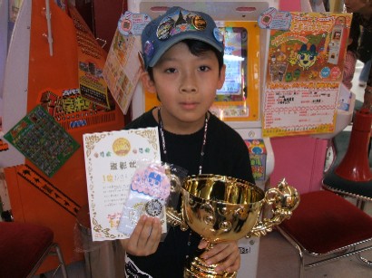 この日,たまカップ「しょーがくかん杯」2連戦でした。まずは10時半からの札幌駅前のデパート内ゲーセンでの大会。会場につくと,ボードに「告知済の競技,かけっこ&くりひろいが,かけっこ&たまのりに変わった」と書いてありました。まあ,ロムが変わったこともあり,仕方ないことですね。でも,事前に告知されていることは知りませんでした(^^;)。それでもその変更後の競技を見て,俄然張り切る息子。息子的に「たまのり」は絶対の自信を持っているようです。大会は,珍しく(笑)16人のフルメンバーで行われました。団体戦です。息子はうまくくじを引き,赤組の最終8組目となりました。これで勝負デッキで思い切りできます。大会がはじまりました。「スーパーまめっち」を使ってる子,シークレット以外を使ってる子,そして早速「サンタクロっち」を使ってる子(競技的には?ですが)などがいました。2組目で,その「サンタクロっち」が「かけっこ」で高得点を出しますが,「たまのり」で相手「スーパーまめっち」と同点となり,勝ち点を分ける形になり,それほど得点は伸びませんでした。6組目では,「すぴーど」ということで,「まきこ+だいしんゆう+宝石」で来た子もいましたが,「かけっこ」でボーナスボールを取り損ない,また「たまのり」でちょっとグラついて,得点は伸びません。この時点で2組目の子が1位,6組目の子が2位でした。さて,息子の出番です。当然「かけっこ」は「まきこ+だいしんゆう+宝石」です。やる前に,とにかくボーナスボールはスピードを落としてでも絶対に取るように言ってましたが,うまくスピードがのった状態でゲット。相手に勝てばいいということで,トップスピードでなかったことから,2組目の子に,数点足りませんでしたが,2618点で1競技目は上出来です。「たまのり」,絶対の自信を持つ息子,「職業をあわせたともだち」に「宝石」で行きます。たまに接着剤でもついてるのかというくらい(^^;)微動だにしない「まきこ」。「たまのり」は3130点でした。合計で5748点。2組目の子や6組目の子が4400点台,4300点台でしたので,最終組の息子の得点が大きく上回りました。ということで!しょーがくかん杯8勝目,通算13勝目となりました(^^)。この店舗はカップ設置店じゃなかったのですが,レプリカがありましたので,持って記念撮影です。さて,14時からはヨーカドー全店で行われる「しょーがくかん杯」です。うちは,以前ムシのヨーカドー大会で準優勝だった店舗に行きました。で,普段の大会でも人数的にフルにはならず(10時半の大会が珍しい),市内6箇所のヨーカドーで開催するわけですから,人は少ないだろうなと思ってましたが,この店舗に集まったのは・・・なんと息子を含めて2人!でした(^^;)。トーナメントですから(まあトーナメントでなくても)いきなり決勝です。息子はオールラウンダー「ひょっとこ」を選びました。相手の女の子,ノーマルカードでした。相手の子がボタンを押して決まった競技はなんと「なべ」。しまったというような顔をした息子ですが,トーナメントですし,全部のアイテムを取らなくても,点数が高ければいいわけだし,慌てないでやってくれれば・・・。でもそんな心配は無用でした。相手の子は「なべ」にまったく慣れていなくて,息子,そんなに慌てなくてもアイテムをすべて,最後にボーナスボールも取って勝ち,3400点台を出しました。2競技目で息子が選んだのは・・・「たまいれ」です。そんな必要はまったくなかったのですが,フルパワーでいった息子です(^^;)。3300点台を出しました。合計得点が出る前に,店員は「ハイ終わりました」と電源を落としてしまいました(笑)。でも相手の子に6000点くらいの差はつけてたでしょうか。まあ,2競技とも取ったわけですし・・・2人で戦った結果ですが,しょーがくかん杯9勝目,通算14勝目となりました(^^;)。函館遠征ではできなかった1日2勝をあげることができました。このあと,ムシスタに戻りムシ大会に出ましたが,たま2勝の影響でちょっと気合が入らず惨敗(^^;)。でも大会後,いい配列との情報をもらい,ちょっと連コ。アダアク3枚目をゲットしました。また帰りに近所のゲーセンでは,ちょっとお金を使ったものの(嫁さんに叱られつつ ^^;)「まめっちカードいれやさん」を出し,これでシークレット&ロイヤルは2セットとなりました。まあいい日でしたので,息子にはDSの新ソフトを買ってあげました。私は・・・私にコロコロイチバンの「スーパーアタックヒメカブト」,DBZの金色カード9枚つきのカードファイルを買ってあげました(爆)。