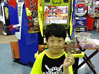 いつものように,もっと早く更新するはずでしたが,すいません,つぼ八行って,帰って来たらそのまま寝てしまいました(^^;)。なぜつぼ八に行ったのかは・・・ 今日は朝にゲッテンカの大会がありました。夕方に息子は塾があるため,息子にとって本日唯一の大会です。参加者は前回より減って7人でした。私と息子はトーナメント表の左右に分かれ,「親子決勝」も一瞬頭によぎったのですが・・・今回はデッキ固定の大会でしたが,息子は「サイカ」(恐竜キングじゃないですよ 笑),私は「つる」を使いました。息子は1回戦,ファイヤーデッキとの対戦でしたが,なんとか勝って準決勝へ。準決勝も相手はファイヤーデッキ(シクレ)でしたが,スキルの差があって勝って決勝進出です。私は1回戦,同じくファイヤーデッキとの対戦でなんとか勝利。準決勝,前回も参加されていたスキルの高い学生さん(?)との対戦で,「つる」同士でしたが,先に攻撃を多くした結果,相手にラッシュさせてしまい,「ど根性」は発動するものの,押し切られました。ああ・・・親子決勝の夢がまたしても・・・(^^;)。決勝は,息子が先にラッシュ発動し,相手は「ど根性」はあったものの,押し切って【優勝】となりました(^^)。前回大会に続き,息子は連覇することが出来ました。ということでの「つぼ八」でした・・・(^^;)。 ゲッテンカ大会が終わったあと,息子は塾があるので家に送り,私だけドラクエのVジャンプ杯に応援に行きました。総エントリーは前回より若干減って29組でした。東京からヤンガスさんが来て当選番号を読み上げます。なかなか仲間や常連さんも呼ばれず,ヤキモキしましたが,最後の最後,仲間のカイト君&チヒロ君ペアが当選しました(^^)。カイト君&チヒロ君は,1回戦も準決勝も常連さんのペアとの対戦でしたが,「ドラム」や「スーパーハイテンション」で押されながら,なんとか守って勝ちあがり決勝へ。決勝はWモンマスとの対戦でしたが,1ターン目,相手が「ムチ」を挿したところで,カイト君&チヒロ君は「メダパニーマ」で応戦し,4体混乱させ,「ムチ」の効果を1体に受けただけでした。その後お互い「秘法」や「光の玉」でオーブを貯め,5ターン目にとどめを撃って打ち消し合い。最終ターン突入でしたが,カイト君&チヒロ君の体力は1000以上あるのに対し,相手の体力は400くらい。相手ファーラットの「まどいの息」で3体止められ,一瞬ドキッとしましたが,「リッチ」と「てっきゅう」が相手体力を削りきり,カイト君&チヒロ君のペアは見事【優勝】となりました(^^)。おめでとう!!!ところで,あとでカードフェスタの入場券が送られてきますが,北海道でそれもらっても,ホント嬉しくないですね・・・。 さて,お待たせしました!プレ企画最終弾~ラーメンEX編の当選者の発表です。最後ということで,アミダにも力が入りましたが,3名の当選者が決定しました。はずれた方にはごめんなさいです。この先170万アクセス,180万アクセスを突破することがあれば,またプレ企画をやりますので・・・。それでは!当選者は【ジンさん】【star&king(とっちゃさん)】【マサルナさん】です!おめでとうございます!当選された3名の方は,すいませんが「メッセージを送る」からご住所・お名前・電話番号を連絡願います(携帯メールでもOKです ^^)。 月曜からずっとプレ企画をやりましたが,毎日たくさんのご応募いただいたのに,はずれた方には本当に申し訳ないです。次の機会を楽しみにしていただいて,当ブログにまたアクセスしていただければ幸いです。 日曜は超久々の「恐竜キング大会」です!キャッツ新川で昼からトリオ戦×3です。もう恐竜のワザも忘れていますし(笑),うまくデッキを組めるか不安ですが(確か,スーパータイプとかいうカードもありましたよね ^^;),楽しもうと思います。