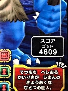 スキャンバトラーズ今日は朝からいつものようにスコアタに行きました。週末に通うそのイオンでは、24時間テレビのイベントもやってて、スコアタを終えて帰るとき、ちらっと菊地亜美を生で見ましたが、テレビで見るより可愛いなと思いましたよ(^^)。 そのスコアタでは・・・4993点でハイスコア更新となりました。もうちょいだよ~!ガード2回に会心が5200くらいでしたが、もう1回ガードが出るとか、会心がもう少し伸びるとか、モンスターの連打にミスがなかったら5000点超えてましたね・・・。まあスコアタ期間はまだまだありますし、楽しみは後に取っておきましょうって感じです(^^;)。