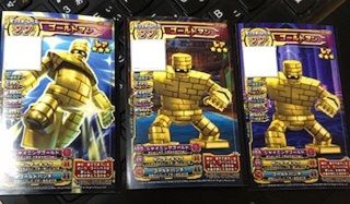 スキャンバトラーズ!テンションがなかなか上がらないものの、あさってから始まる公式大会に向けての準備は着々と・・・ さて、写真はバトラーズの「ゴールドマン」のチケット3種です。左はチラシにもある絵柄ですね。そして中は、ポーズ変更をかけたときのチケット仮面のお部屋?の背景です。では右は?これはあの幕張の感謝祭で、2日間超長時間並んでようやく出したゴールドマンですが、背景が深夜の神殿?みたいになってます。この背景、いま稼働中のバトラーズでは、ゴールドマンに出て来ないんですよね~サイクロプスやキラーパンサーに、この背景は出て来るんですが。ということで、ゴールドマンのこの背景は、感謝祭限定ってことなんですよ!他の★3レアに感謝祭限定の背景があったのか分かりませんが・・・いやあ感謝祭行ってよかったあ~!なんてな(by 長介)