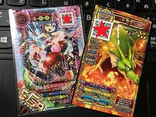 ムシキングいやあ、初めてティナを自力でキラに出来ました!まあキラにしたのは息子ですけど(^^;)。で、ティナがキラになった直後にイベントバトルでオキシ来るかぁ。キラになるわけないけど、万が一ってこともあるから追加買いしちゃったよ(笑)。 スキャンバトラーズドラゴンは私が2回目のプレイで出しました。初め、どうやってドラゴンが立ち上がるのか分からなかったので、相手モンスターが消滅したからダメかと思ったら、そこから再び現れて「こっちを見ている」って感じでチケット候補の1枚目に潜り込むんですね!次のイベントは・・・来週のタッグ戦までないし、またしばらくバトラーズは休みだな。