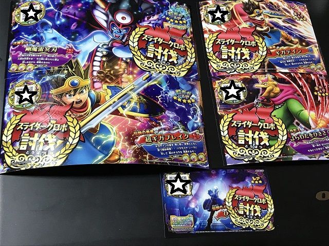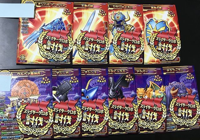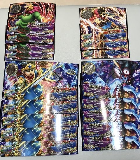 スキャンバトラーズ昼過ぎに超4弾がコンプとなったわけですが、そのあとはスタンプをチケに押そうとまったりプレイ。早々に超ギガブレイクのスタンプを押した後、間もなくまた超ギガブレイクが出て来たので、それはチケ化せずに福引きにシフト。うまくサージタウスが出てくれたり、その直前にツメが出て来て、ほぼ欲しいチケが揃いました。SPのスタンプは・・・SPに関してはコンプです。サージについては今日はスタンプが押せませんでしたが、息子は「いらない」って言うものの、私の気が収まりませんのでなんとか手に入れたいと思います(^^;)。そのサージは・・・3枚揃い、ツメも3枚揃いました。 さて、スタンプですが、来月の大会前には揃えたいなと。また装備が揃ったことで、このあとのバラモスハイスコア&バラモスゾンビ累計スコアタ?に向け、検証を徐々に進めて行こうと思ってます(^^)。