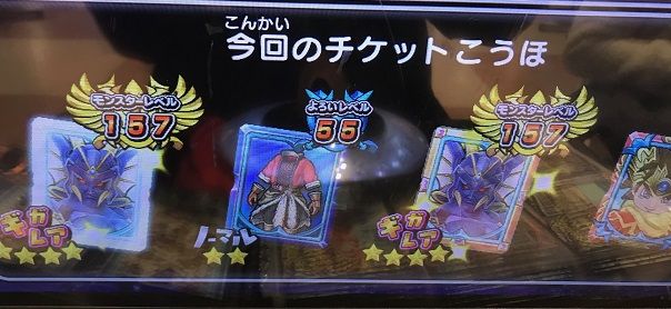 スキャンバトラーズそれはいきなりやってきました。ようやくガリンガ2枚出しです。昨日のチョキに続き、今日はガリンガのグーとパーを手に入れ、これでガリンガは10枚になったので完全終了です(ジャンケン出来ますよ! ^^)。 そして息子はレベチケを4職業オールマックスにしたあと、育て直しをやり始め、本日メタスラ1回、はぐメタ1回で「まほつか」をレベル98にして目標達成となりました。4職業オールレベル98!こうしておけばあとは「必要に応じて」ひとつの職業をマックスにしたり、複数の職業をマックスにしたり出来ます・・・必要があれば!ですけど。まあ、先日の日本最強の映像を見た方で気付いた方もいると思いますが、息子の決勝ステージはこの育て直しの途中のレベル状態で戦っての優勝でしたよ。 そしてこのレベチケを使ってゾーマと戦ったり、過去ボスのバラモスと戦って・・・日本最強で優勝してもらった「超ギガブレイク」を使っての『超絶決戦』ですね。市村Pさん、ゾーマのこれ見せたかったんでしょ(^^)。