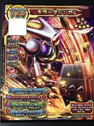 今ドラマでやってるけど・・・気を付けないとね。ま、資産と言ってもスキャバトの大量のチケしかないけどね(^^;)。あ、篠田麻里子さまが出てるんですね。息子は何回麻里子さまと握手したのかな・・・銀座で行われたファンミーティングも行ったな。野呂ちゃんとの掛け合いが面白かった。そのとき私も記念品のリップ手渡しで1メートルの距離まで最接近したのもいい思い出です(^^)。 スキャンバトラーズギガレア・・・なんかキラマ3しか出て来ないんですけど。もうキラマの枚数も二桁に突入しちゃったよ。で、ロボ討伐は昨日書いたパーティでやってますが、通常は改造候補としてマジンガしか選ばれないんで、改造成功であればサージ、ウルベア、キラマ、ダークのどれかに改造ってことになりますが、改造候補にSキラマが来たらもう改造でマジンガ確定ですので、毎回Sキラマの登場を祈ってます(^^)。