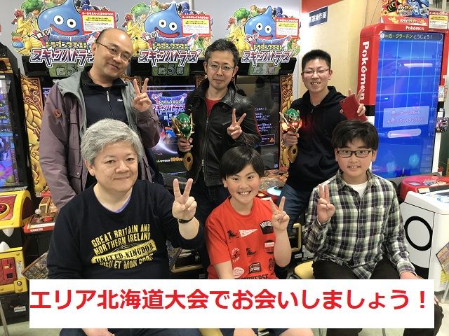 スキャンバトラーズ10連休・・・行くとこもなくただひたすらホームのゲーセンに通って真レオを討伐する日々・・・なんか味気ないと思い、急きょチーム掲示板にて「チームゴッド北海道本部でミーティングしましょう!」と声をかけましたら、急なお誘いだったにも関わらず、道内の全プレイヤーが集まってくださいました(息子ゴッドだけ仕事で休めず欠席でした)。皆が集まってやるのは、当然真レオ討伐ですよ。チーム員がチケ的に戦力が足りない場合は、私から余品のチケを提供させていただきました。集まったなかでこの日まで真レオを倒したことがあるのは、私としょうりゅうさん(グフィヲさん)のみ。ですが、2、3の討伐ポイントをちょっとアドバイスするだけで、ルリさんもあかざばんさんも初討伐と相成り、まさと君や弟のひろと君は来る討伐の日のために僧侶のレベル上げを頑張りました!一度倒してしまうと、あとは7割、8割くらいの率で勝てるでしょう。チームミーティング大成功でしたね(^^)。※実はこのなかに私シン・ゴッドがいます。分かりますか?(笑)もっと早くからチーム内に声かけしていれば、全国のチーム員も集まれたのかなと思いました(どうもすいません)。でも、6月29日の「エリア北海道大会」もありますし、札幌に来られたチーム員、そしてチームの垣根を取っ払っていろんなプレイヤーの皆さんと前夜、そして後夜もスキャバトで楽しみたいと思います(^^)。 ちなみに私は、滝川で、そして地元に帰ってきて未所持のMサイズ3枚に青スタンプを押せました。段々とコンプに近づいてます。