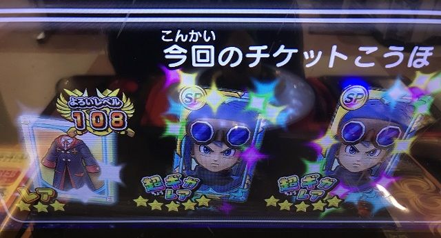 スキャンバトラーズ以前の記事でレベル上げは通常プレイと福引きを併用して頑張りましょう!みたいなこと書きましたが、実際私は「つぎのレベルまで1080」なんて書かれると、もう福引きやっちゃいます。次のプレイではぐメタが出てきたら一発でレベルアップですが、そんなときに限って出て来ない(^^;)。連続メタスラでも3~4回プレイしなけりゃならないし、ましてシドー戦だったら5戦じゃきっと足りず、6戦やることに・・・1時間半かかりますよ。で、これが福引きなら3回やればいい訳だし(福引き1回につき370)、時間も15分程度で終わります。 そしてこんな風に「福引き」も併用してることで出費は多くなりますが、副産物があって・・・それがゾーマです!(^^)ゾーマはリボン数400につき1枚と言われてますが、どこで出て来るかはまさに神出鬼没。ですが、ちょこちょこ福引きをやってることでゾーマに遭遇することも多くなってるようです。 そのゾーマですが、10枚所有と言ったんですが、本日!朝から行った店では、ちょっと力入れ過ぎて10回以上福引きをやってしまって・・・でもゾーマ降臨!昼にさんぱちラーメンが食べたくて東区方面に行ったついでに寄った店で・・・3プレイでゾーマ(ビックリ!)そして夜に寄った店では、なんとお座り一発でゾーマが出て来て・・・今現在ゾーマは13枚になりました。今日はちょっと怖いくらいの日になりましたね(^^;)。 レベル上げについてはまだまだ「福引き併用」でやらないといけませんし、ゾーマはまだまだ増殖するでしょう。ストックばかり増やしても無駄だし、何か有効活用策を考えないといけないですね。