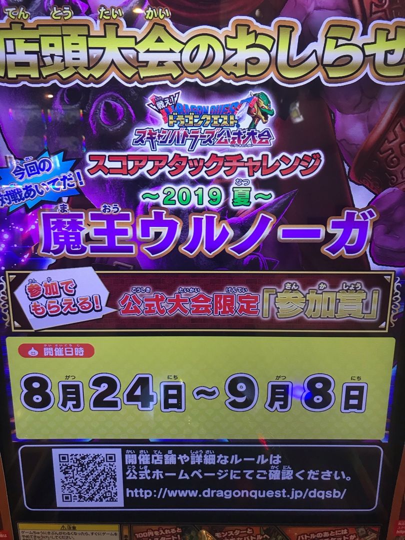 スキャンバトラーズいやあもう秋ですね。こちら北海道ではお盆が過ぎ、もはや秋の風が吹いています。今週末から大会が始まりますが、「2019夏」なんて名前は北海道ではふさわしくないですね。北海道では『2019初秋』にしてくれよ(笑)。 ところで常々残念に思ってる・・・いや、かれこれ2年もの間残念に思っているのが・・・スキャバトのチケットの裏!ずーっとバトルスキャナーのロゴが入ったまま!まあバトルスキャナーがスキャンバトラーズに変わった2年前は、「すぐには変えられないだろうし、大目に見てやるか」って感じだったけど、今に至るまでいつまで経ってもスキャバトのロゴに変える気配なし。これはもはや単なる・・・手抜き!こんな手抜きをしておいて、「大会ではバトスキャのチケは使えません」とかよく言うよ。 あさって22日から得点王が始まりますね。ゴッドのレベチケを得点王が始まるまでに4職業オール★99にしようと頑張ってましたがもう無理ですね。残念・・・ですが!こちら北海道で「2019初秋」大会の初日となるのは9月1日の発寒イオン。それまでにはオールマックスになるのは大丈夫そうな予感がするので「真シドー」を倒しながらレベル上げを頑張りたいと思います。得点王は・・・エリアが終わってから本格参戦かな(^^;)。