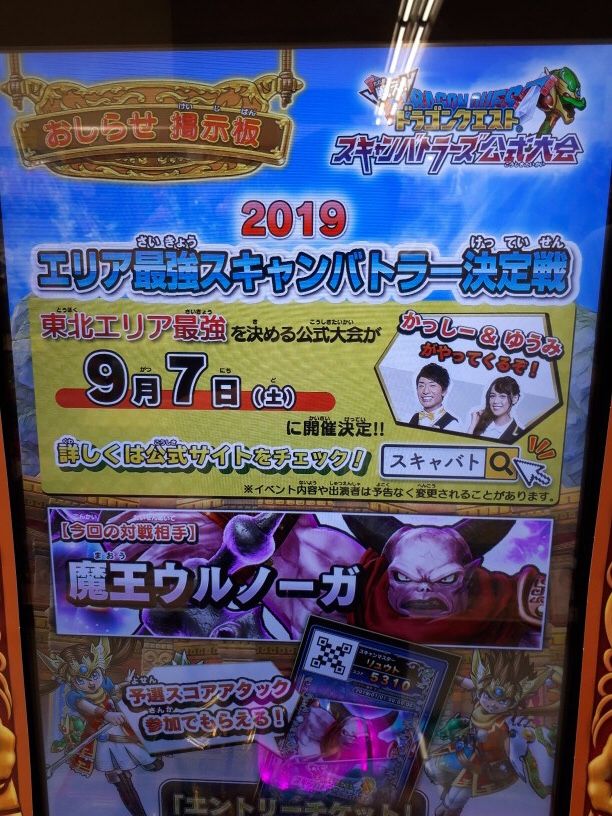 スキャンバトラーズ エリア東北だけど! 東北地方の筐体では 9月7日と告知していたのに、公式で9月8日? どっちなんだ? これ、ゴメンじゃ済まされないこともあるな。
