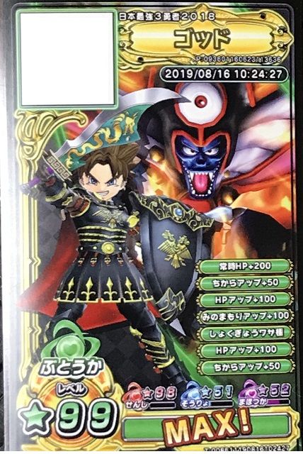 スキャンバトラーズ日付けが変わる前に倒せて良かった^_^私も僧侶で戦いましたが、チーム員から「戦士で真シドー討伐!」の連絡もありますよ。今日は20枚目&21枚目のゾーマもゲットして割といい日になりました。 レベル上げでアップするステ(判明分)を追記しておきます。 「戦士」 ★1 すばやさ50 ★10 HP100 ★30 しょくぎょうワザ極 ★50 ちから50 ★70 HP100 ★90 みのまもり100 ★99 常時HP200 「武闘家」 ★1 ちから50 ★10 HP100 ★30 しょくぎょうワザ極 ★50 みのまもり100 ★70 HP100 ★90 ちから50 ★99 常時HP200 「僧侶」 ★1 ちから50 ★10 みのまもり100 ★30 しょくぎょうワザ極 ★50 すばやさ50 ★70 HP100 ★90 みのまもり100 ★99 常時HP200 「魔法使い」 ★1 HP100 ★10 みのまもり100 ★30 しょくぎょうワザ極 ★50 HP100 ★70 HP100 ★90 かしこさ50 ★99魔法使いの★99も常時HP200なんでしょうし、これで全部明らかになりましたね(^^)。
