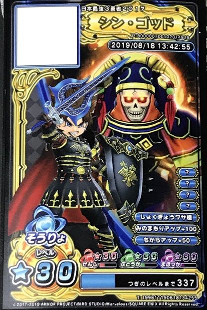 2016年7月29日(私の誕生日)に公開されたシン・ゴジラ・・・来年はシン・エヴァ公開。 そして2021年にはシン・ウルトラマンという映画の公開が決定したとか。 じゃあ2022年に公開されるのは? 来るぞ!シン・ゴッドの壮絶人生を描いた感動超大作が!(^^) スキャンバトラーズ で、映画と言えば・・・ 明日からドラクエの映画が公開になりますね。 私はすでに座席まで予約して明日の公開を待ってます。 まあ、待っているのは公開というより、入場時にもらえるキーホルダーですけどね(明日、入り口で「キーホルダーまだ届いてません」とかやめてよ)。 そして実際に映画を観るかどうかですが(レベル上げしたいし)、映画の内容がゲマと戦って倒すということで、私が優勝した2017年の日本最強スキャンバトラー決定戦のときの相手がゲマだったし、少しだけ興味があるんですけどね・・・そのうちテレビでやるかな(^^;)。 あとさあ、マックのプロモ、みんなうまく2個で2種揃ったって人ばかりなんだけどさあ。 本当~? 実は5、6個買ってダブりまくりだったけど、恥ずかしいから2個で揃ったって言ってるだけの人いないの~(笑)。