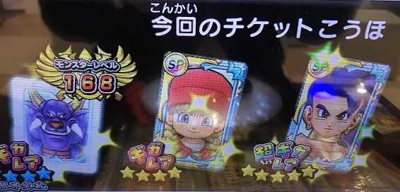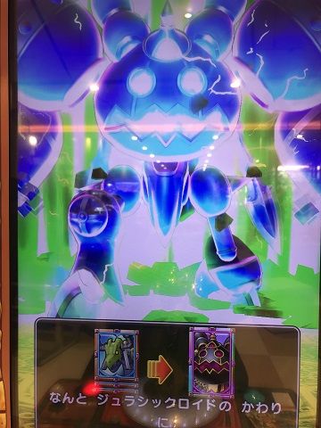 スキャンバトラーズ14日から稼働した新3弾ですが、なんか普通にプレイしていて、新キャンペーンの「新型マシン起動作戦」が発生しないので、なんかまた不具合なんじゃないの?なんて思ってたんですが・・・ついにその時が私に! 僧侶でレベル上げをしてますので、ギュメイにジュラシックロイド。究極限スライダークロボを使ったらスライが出てくれないんじゃないかと思い、ドレアムでやってました。で、バトルの後半、ジュラシックロイドがいきなりコケて・・・わーお!究極限スライダークロボが出て来たよ~!(^^)せっかくですからドレアムもスライダークロボも、究極限ワザになるようテンションチャージ。このキャンペーンじゃなければ、ひとつのパーティのなかに究極限モンスターが2体いるなんてないですから、貴重なショットですよね!この出て来たスライダークロボをスルーして、青スタンプを付ける努力は、激混雑のゲーセンのなかで危ない(後ろに並んだ人に獲られる危険性)ですから・・・赤スタンプ付けて捕獲完了です。我が家の3枚目の究極限スライダークロボになりました(^^)。 しかし・・・スライをパーティに入れていたら新型のスライが出て来ることがあるのか謎ですね。他の人の起動作戦では、パーティにタイプGがいるのに新たなタイプGが起動してましたので、スライを入れていても新型スライの起動もあるんじゃないかと思いますがどうでしょう。 さて、明日は私の僧侶が★99レベルボス(ゾーマ)に到達します。無事に討伐出来るんでしょうか(^^;)。