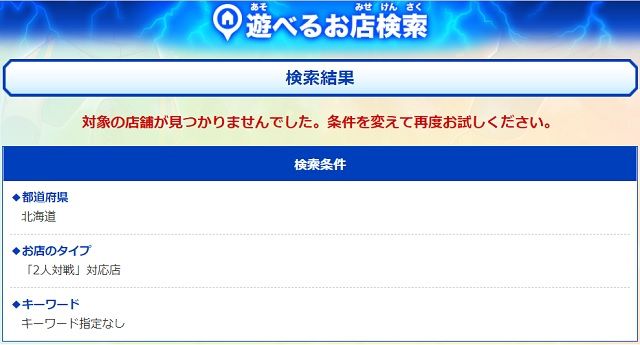 クリープのないコーヒーなんて・・・↑このCMを覚えている人はもう50歳は超えてますよね(笑)。で、いまのイナズマイレブンACの大会開催状況を見るにつけ、クロスブレイドの大会も心配だ!てな話は先の記事に書きましたが・・・じゃあ、イナズマ自体の設置状況はどうなってんの?って調べてみたら?これは北海道内、結構設置されてるようですね。この設置店がおそらく丸ごとクロスブレイドの設置店になるのでしょう。まさか、いまイナズマを置いていないのに、クロスブレイドが稼働するからといって設置しようなんて店はないでしょうし、そんな甘い考えはタカトミも許さないのでは?それで、イナズマの設置店を検索するのに、「2人対戦」対応店を検索項目に加えるチェックボックスがあり、これはきっと『大会開催』に関係してくるんだろうとチェック入れて検索してみたら・・・我が目を疑った!なんと北海道には1店舗もないじゃないか!これだもの、イナズマの大会の種類によっては北海道で開催しない(出来ない)訳だ!ヒーローズのような2台で対戦するような大会は出来ず、せいぜいスキャバトのスコアアタック的なイベントがやれるのみなんだなあ・・・なんだかなあ・・・ 危なかったよ。こういうこと事前に調べないで、クロスブレイド初日に連コして「初日コンプ!」なんていい気になってたら、大会の参加賞は手に入らないわ、ていうか大会もないわで、北海道は完全に取り残されて、私も相当惨めな思いをするとこでした(^^;)。 さあて、なんとか「半沢直樹」前に更新出来ました。テレビの前に鎮座して、青ミカンむきながら見るとしますか!
