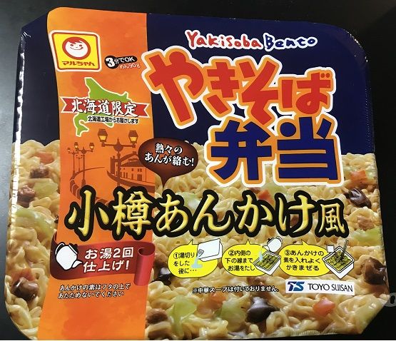 いまや北海道限定商品として超有名なのが・・・「やきそば弁当」!カップやきそばということで、お湯を注いで3分経ったら湯切りをして特製ソースを混ぜて食べるという普通のやきそばなんですが、かやくとして付いている野菜が美味しかったり、ソースが絶品なのはもちろんですが、湯切りをしたそのお湯を粉末スープを入れたカップに注いでつくる中華スープがとにかく最高!もう道民なら食べたことが無い人はいないでしょうね。ときたま、やたら食べたくなる商品なので、箱買いしてストックしている家も多いと思います。 そんな「やきそば弁当」ですが、昨日新製品が発売されました。「やきそば弁当 小樽あんかけ風」です!(^^)小樽は市全体であんかけ焼きそばをプッシュしてるわけですが、今回全道どこででも小樽のあんかけ焼きそばが食べられるようになりました。私も早速昨日2つ買って(いまは定価のほぼ半額なので)、今日の夕食で食べてみましたが・・・いやあ、実に小樽だ!(笑)あんかけにするのにお湯を2回注ぐというひと手間ふた手間はありますが、それがよけい食べる前の期待感を増幅させるってもんです(^^)。かやくに入ってる「きくらげ」が特にいい!(写真の具の黒く見えるのがそれ) いま売ってる商品の賞味期限が来年2月だし、明日もっと買い足すことにしよう!