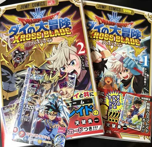クロスブレイド仕事帰りに「今日はもう売ってるかな」とジャンプコミックス「ダイの大冒険 クロスブレイド第2巻」を探しに、家から一番近いイオン内の書店に行くも・・・ない!同じ3月4日発売の「アバンとなんちゃら」とかいう最新巻は入荷してるんだからクロブレの最新巻も売ってていいんだけど・・・店員さんに聞いたら「注文してない」という答えが・・・でもね、変に納得(売れないんだろうなって)。 ということで、今度は家から一番近いスーパーのブックコーナーに行くも・・・ドラクエ関連の書物の影すら見えず・・・ない!もうあきらめて明日もっと大きい書店に行こうかとも考えたけど、どこも注文数が少なくて、明日になったらどこも売り切れになってる気がして、JR駅ふたつ向こうの駅直結のスーパーの書店に行ったら・・・ありました、1冊!まあ、売り場に出してるのが1冊で、奥にまだ在庫があったのかも知れませんが、とにかくコミック難民になる寸前で買えて良かったです(^^;)。SPカードも無事ゲットですが、写真にあるように昨年は第1巻もSPカードに釣られて買ったし、第3巻以降も買うんだろうなあ。 でもね、逆に言えばこうやってカードが付けば、コレクターは買うわけですよ。コミックでなくてもどんなモノであろうとカードが付けば・・・あの100枚限定のSPカードも、アニメDVDに付けるつもりがあったと思うし、本来はそのために作ったと思うけど、DVDに付いていれば買ったのにね・・・って思うにつけ、タカトミアーツも下手こいたもんだとしみじみ・・・