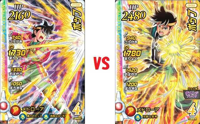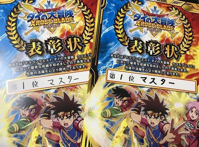 クロスブレイド今日は昨日のスコアタ大会に続き、「2人対戦」大会がありました。昨日の運気そのままになんとか上位に食い込みたいところです。 1回戦、相手のキズナ必殺をヒュンケルでつば競りに持ち込み跳ね返した後、切り札ポップでダメ大アップさせたキズナ必殺で勝つことが出来ました。準決勝、デッキの読み合いのなかで私、初めて暗黒デッキを使いましたが、互いに似たデッキとなったことで終盤はパーフェクトガード合戦となって・・・私としては頑張ってガードしたことが功を奏して勝てました。決勝・・・ここは終盤、ポップとポップの対決が見どころでした。私は切り札ポップで必殺ダメージ大アップを狙いましたが、相手は真3弾GRポップで必殺ダメ大軽減を繰り出してきました。ダメ大アップとダメ大軽減ですからプラスマイナスで通常の必殺分ダメを与えるのかと思いきや、アバンの効果や結界のダメ小軽減を拾われていたからか、私の必殺は相手に「1」のダメしか与えられず、結局私が切り札切ったことによるライフ1マイナスが響いて・・・また準優勝という結果でした・・・(これで2人対戦は準優勝、1回戦負け、準優勝)。でも前も言ったけど、まだ倒れてないキャラと切り札をチェンジしたときにライフがひとつ減るのはおかしくないか?というのと、ダメ大アップのスキルは「そのR限り」なのに対し、ダメ大軽減のほうは「1回限り」なんだから、こっちが必殺を撃った時に1回目のマイ勇者の必殺をダメ大軽減してもいいけど、アバンやヒュンケルが必殺を撃つ2回目や3回目の必殺、そして最後のキズナ必殺をダメ大軽減するのはおかしくないか?とか言いつつ、私はフカセさんにまた負けました。フカセさん、おめでとうございます!(^^) 来週、そして再来週も「スコアタ大会」「2人対戦大会」がありますので、私は・・・上の右側のGRポップを使って相手の攻撃を受けないようにしたいと思います(笑)。あと、昨日のスコアタ大会の結果について、店舗内の順位は1位になるんだけども、スキャバトではそのスコアを全国のプレイヤーと競うってこともあってよけい頑張り甲斐があったんだけどね。店舗のスコアを運営がちゃんと集約してトップ20くらいで公式HPで公開するから、店舗スコアタ大会であるにも関わらず、全国大会のような気にもなることが出来ました。デイリーのスコアで「スコアアタック大会」と出て来るんだから運営もそれくらい集計出来そうなもんだけどね。面倒臭いんだろうね。