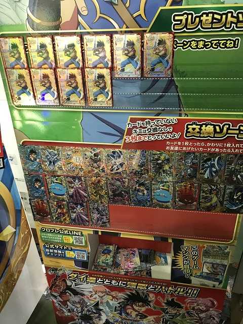 クロスブレイド明日から始まる復活キャンペーンですが・・・お店は既にスタンバイOKのところもありますね(筐体は電源OFF)。このオレンジの札を目印にして筐体を探せばいいんですけど・・・ま、このように旧弾との混合台にしてる店では連コは一切しませんよ(笑)。 で、万にひとつの可能性として、このCPパックは、ひとパックでシクレアバンや追加GRが揃うんじゃないかと・・・そもそも元はアバンをGGRで出すつもりだったと思うんだけど、それじゃあ3,000円の連コで「当たり」出しちゃってそれ以上お金を使わないから、シクレにして、しかもGRまで追加して少なくともひとパックくらいは連コするように仕向けたんじゃないかと。実際には左右のシリンダーに1パックずつ装填されれば、カード切れまでに2万円近く掘ることになるんだけど、運営はそれを狙ったんじゃないかと。これで2パックで獲れなかったとか4パックで獲れなかったという報告がSNSで広がれば、誰も連コしなくなるというか3万円くらいでオクに出品されるのを待つことになってせっかくのキャンペーンも売り上げは上がらないでしょう。なので意外や意外、ひとパックのなかに全部入っているとか・・・ないかな(^^;)。
